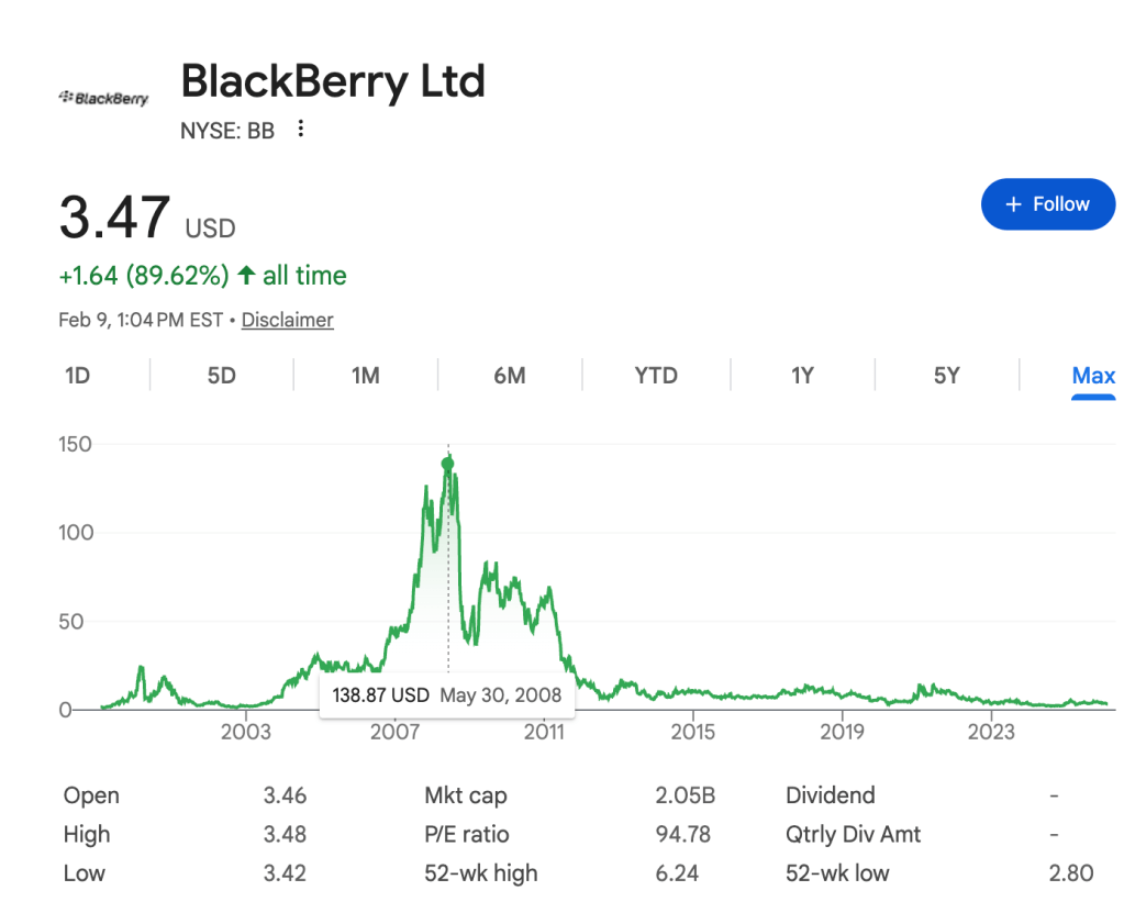 Marta Norton, estrategista-chefe de investimentos da Empower Investments, disse à Axios que isso a lembrou da substituição do BlackBerry quando os iPhones redefiniram a aparência e a sensação de um smartphone. Tecnicamente, a empresa sobreviveu, mas as ações da BlackBerry caíram 98% desde 2008.